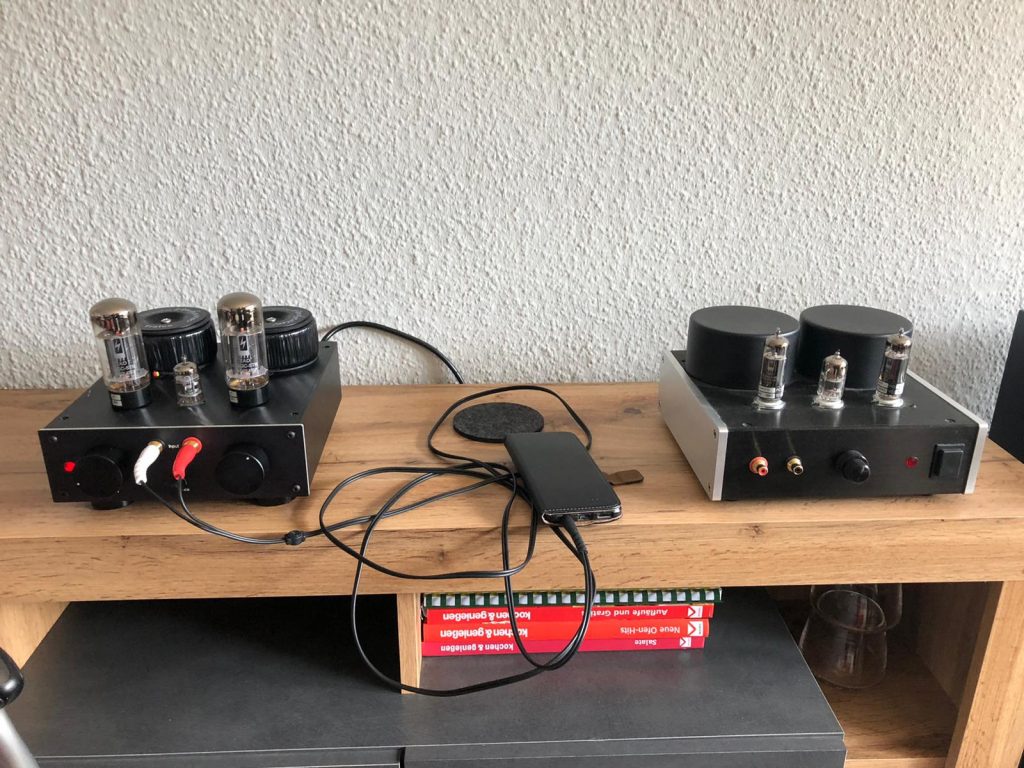 Beide liefern eine effektive Dauerausgangsleistung von 5W pro Kanal. Wie immer nutze ich auch hier die Vanderveen-Ausgangsübertrager, welche hervorragende Übertragungseigenschaften besitzen.